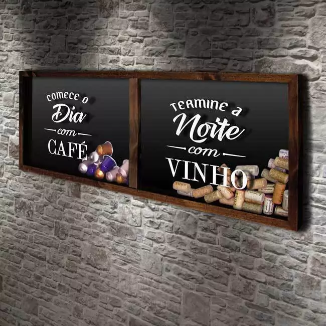 Guarde as rolhas e as cápsulas dos vinhos e cafés compartilhadas com amigos e família neste quadro. Ele tem uma divisória que separa as rolhas das cápsulas.