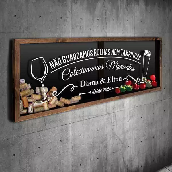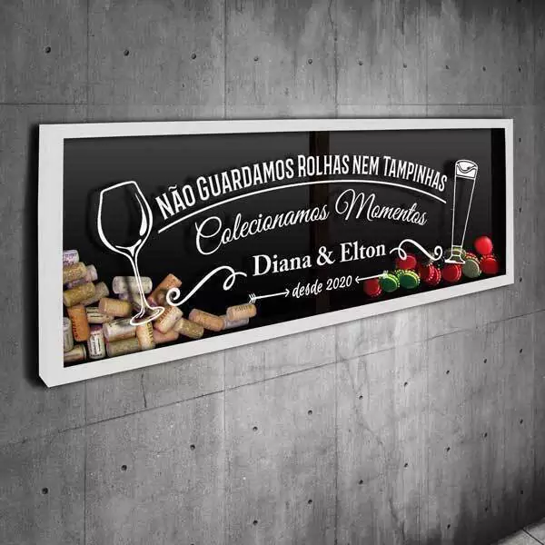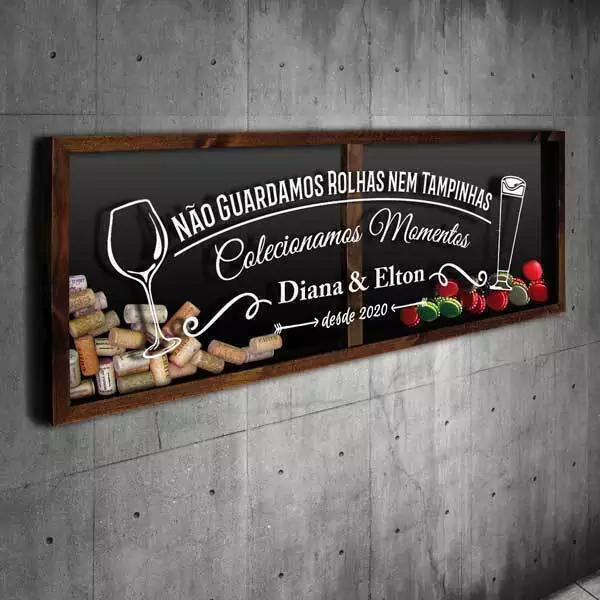 Com o texto: Não guardamos rolhas..Colecionamos Momentos, ,você personaliza com os nomes do casal ou da família, ou de apenas uma pessoa