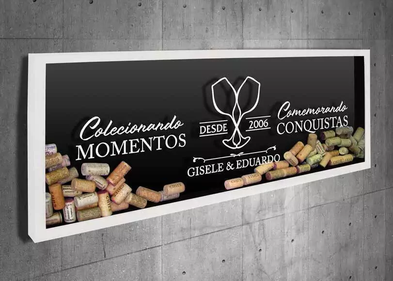Decore seu ambiente e guarde as rolhas dos vinhos compartilhados com a família e amigos neste quadro.