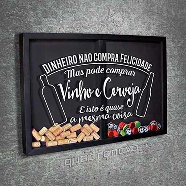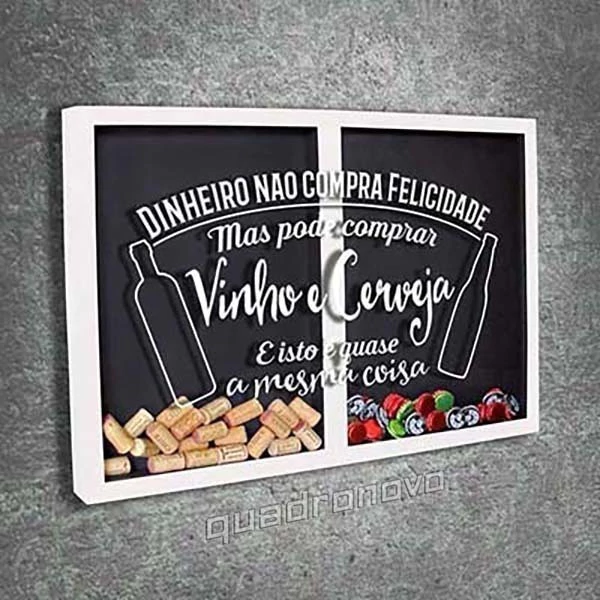- Fundo de foamboard removível para facilitar a manutenção e troca das rolhas/tampinhas/cápsulas, se desejar.