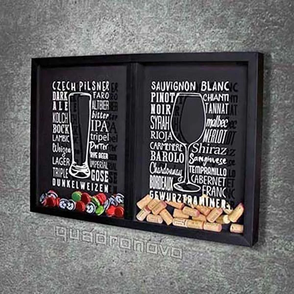 - Fundo de foamboard removível para facilitar a manutenção e troca das rolhas/tampinhas/cápsulas, se desejar.
