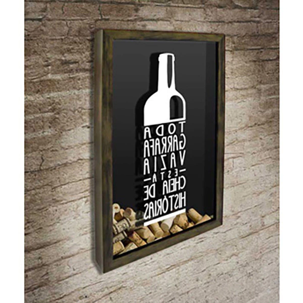 Quadro Porta Rolhas com o desenho de uma garrafa de vinho e o texto: