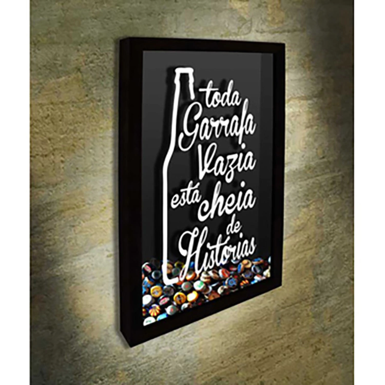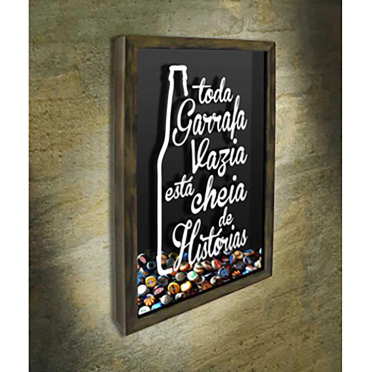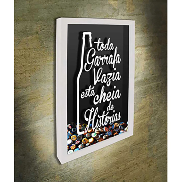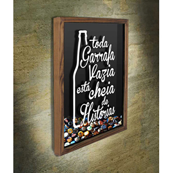 Quadro Porta Tampinhas com o desenho de uma garrafa de cerveja e o texto: