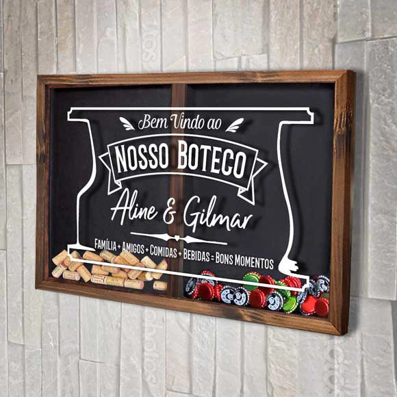 Guarde as tampinhas das cervejas e as rolhas dos vinhos compartilhadas com amigos e família neste quadro.