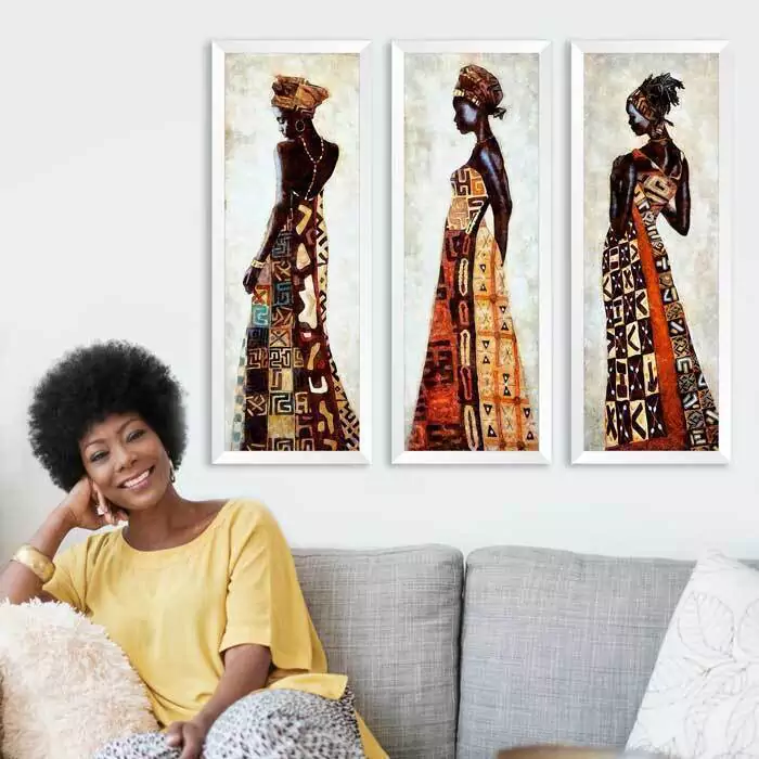 Decore seu ambiente com este trio de quadros que evidenciam a beleza do povo e da arte africana.