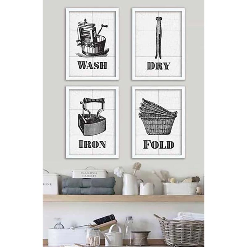 Decore a área de sua lavanderia com este kit de quadros (4 peças)